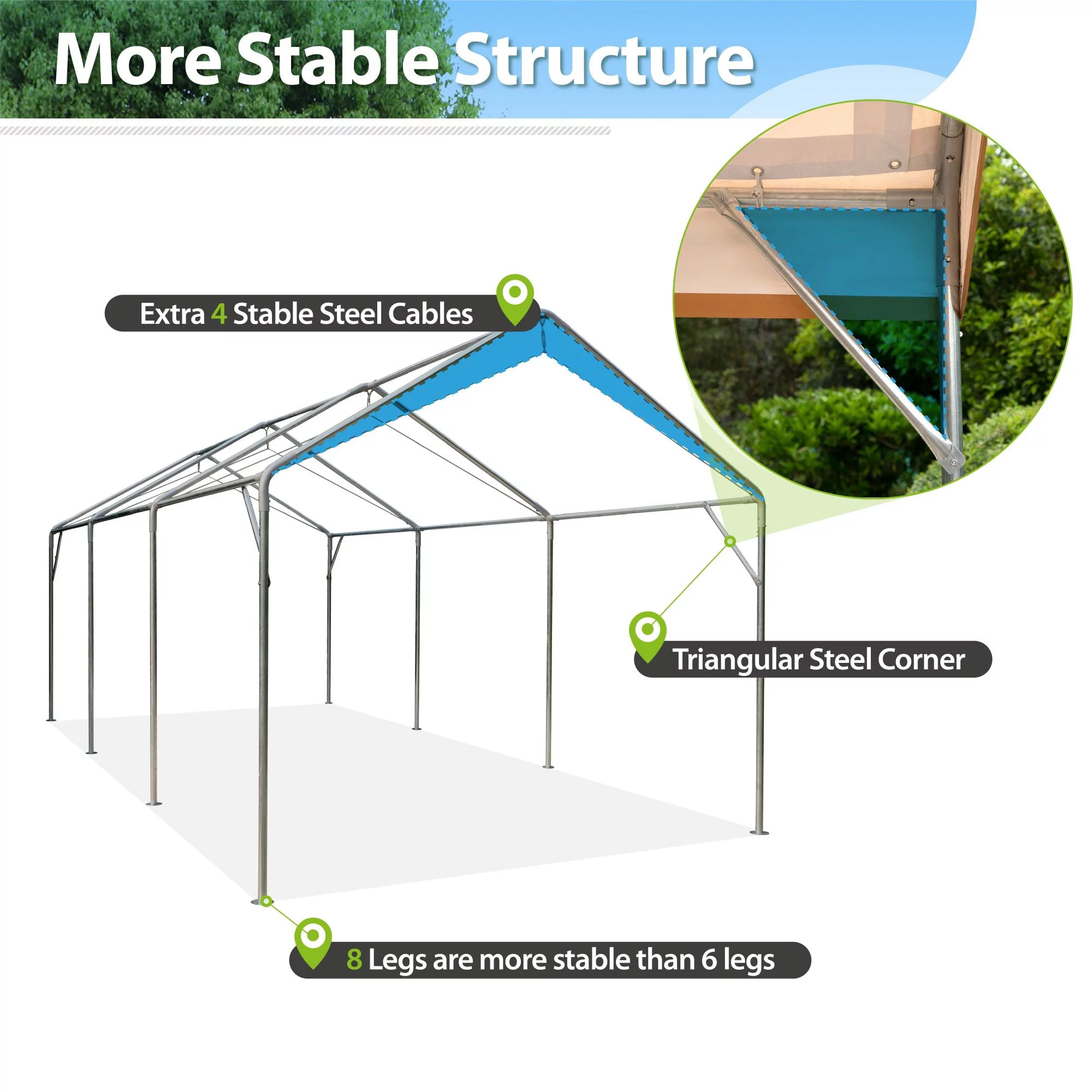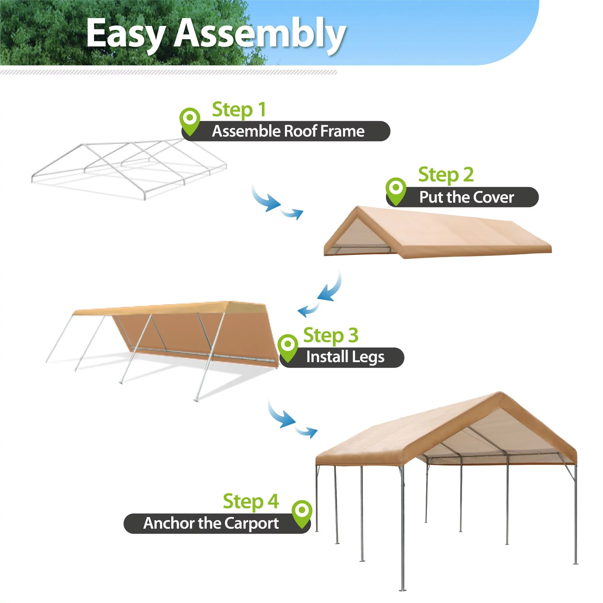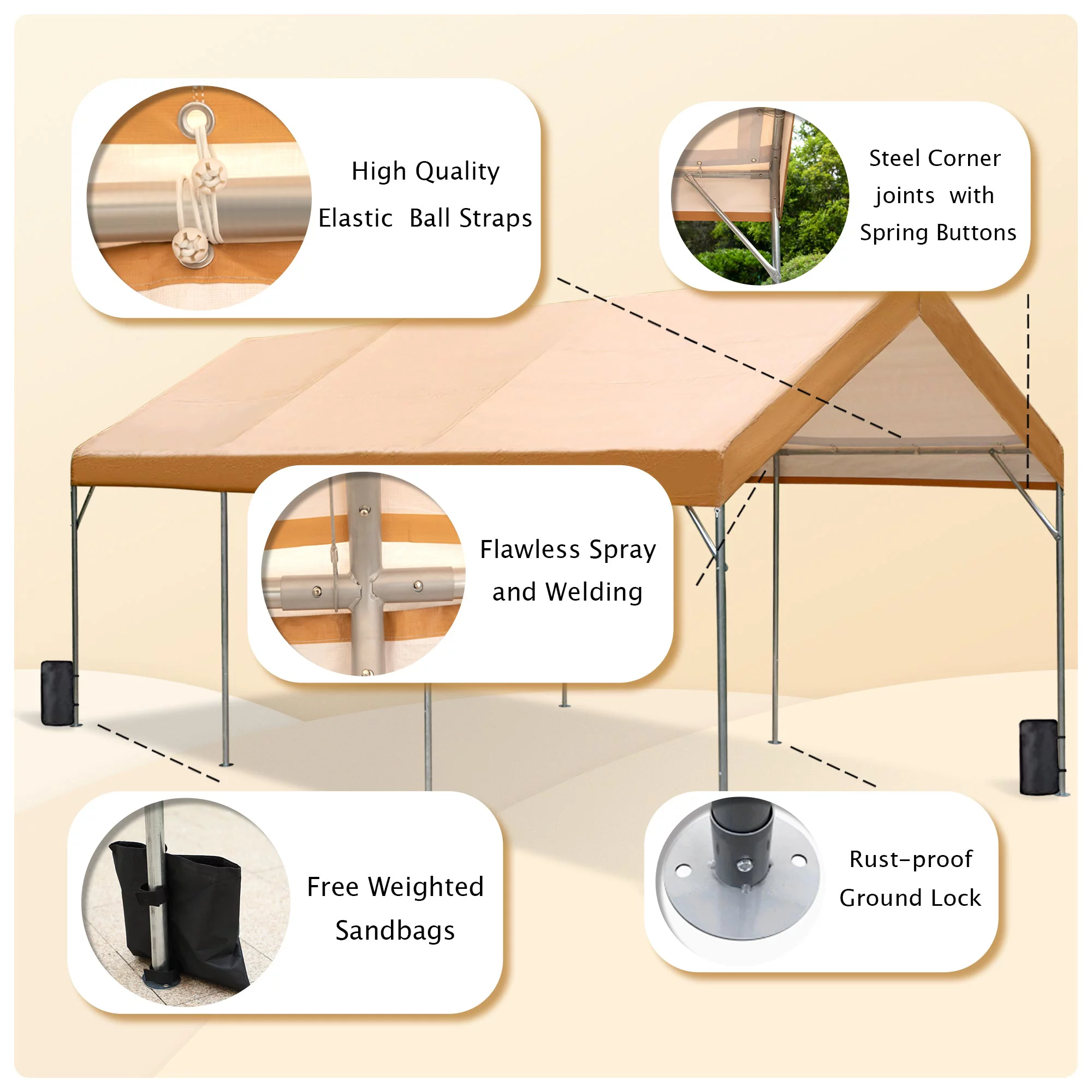 Sophia & William 10×20 Heavy Duty Carport Canopy Tent, Alloy Steel Frame, UV-Resistant Fabric, Beige, Includes Weight Bags